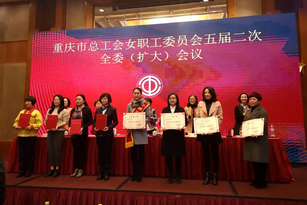 3月6日上午,市总工会女职工委员会五届二次全委(扩大)会议召开。会上,市总工会女职工部部长曾洁向与会代表详细介绍了日前在京召开的全国先进女职工集体和个人表彰大会盛况,并宣读表彰决定及重庆获奖名单。市总工会第五届女职工委员会主任、市总工会党组成员、副主席杨军波等领导为荣获全国五一巾帼标兵岗(标兵)的集体和个人颁奖。我校韦晓兰教授喜获“全国五一巾帼标兵”称号并在会上受奖。