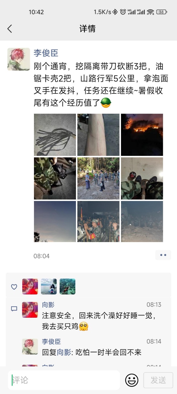 “兄弟们,巴南那边起山火了,急需志愿者,搞快扎起!”